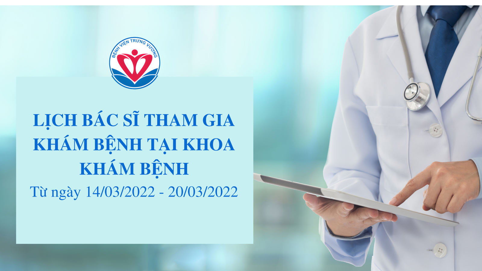 File lịch bác sĩ tham gia khám bệnh tại Khoa Khám bệnh từ ngày 14/03/2022 đến ngày 20/03/2022